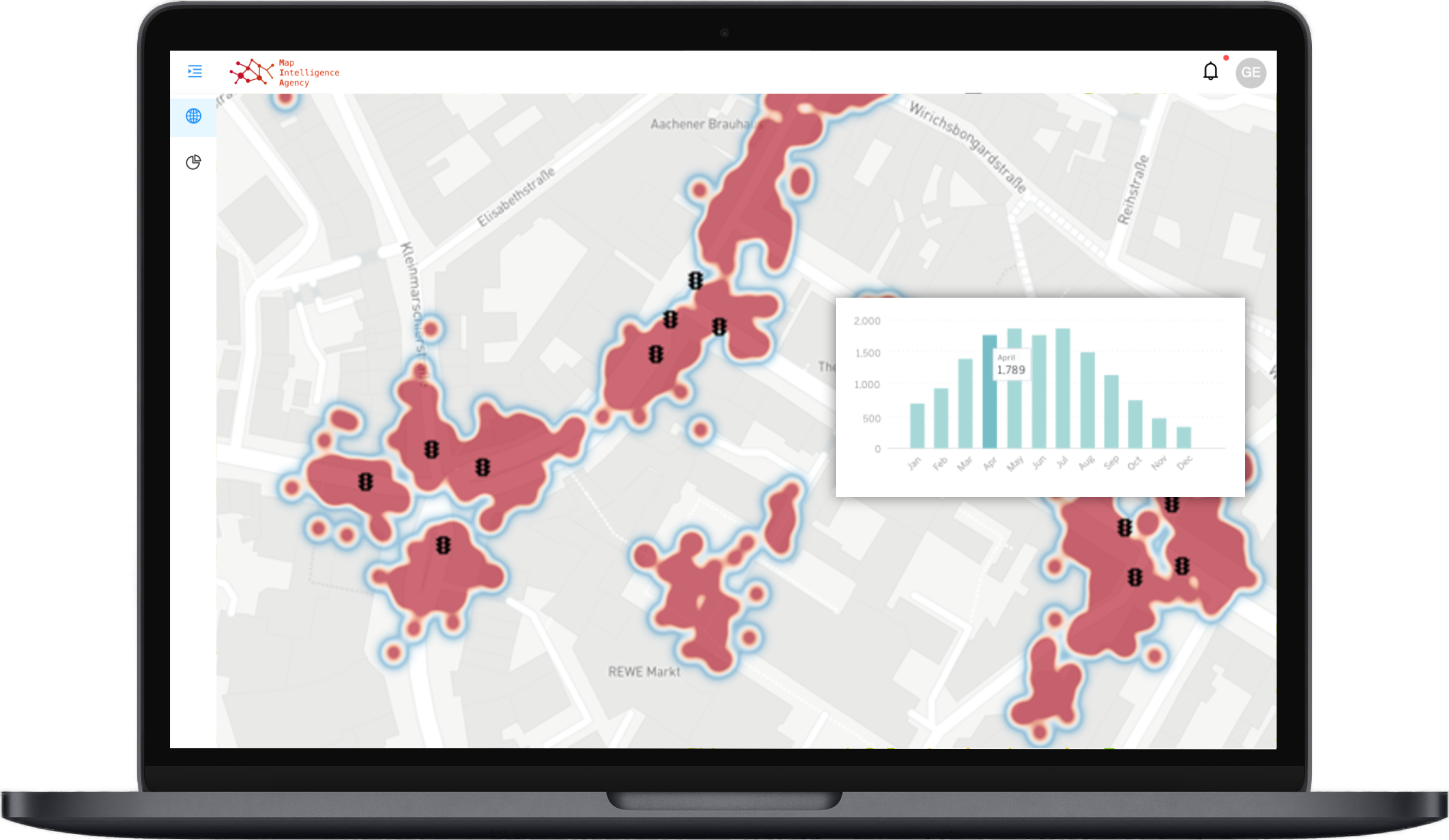 Visualisierungen des Standzeitanalyse-Moduls können zur Planung von Parkmöglichkeiten und Mobilitätsstationen